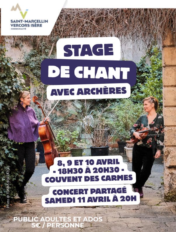 Archères vous invite à partager son univers musical, doux et puissant, autour d'un stage de chant sur 3 soirées. Ce stage se clôturera par un concert partagé le samedi 11 avril au Couvent des Carmes. Avec Violaine Soulier et Elisabeth Renau.